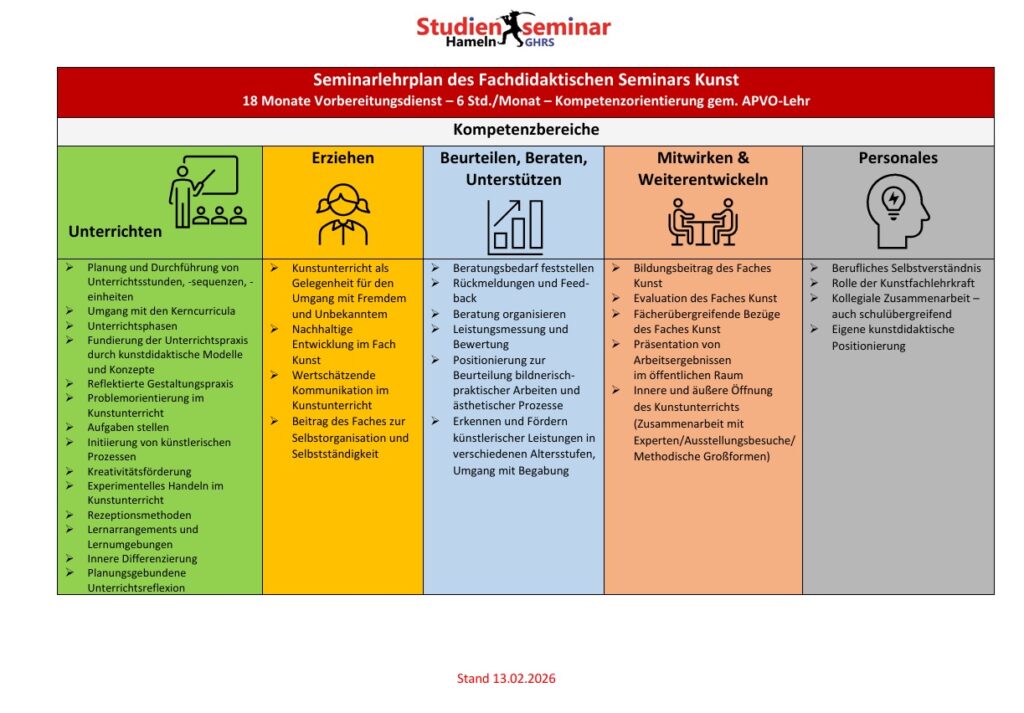 Im Mittelpunkt der Seminararbeit stehen Aspekte der konkreten Unterrichtsplanung und -durchführung. Fundiert durch fachdidaktisches Wissen lernen Sie, wie man guten Kunstunterricht gestaltet, welcher sowohl die Entwicklung der Bildkompetenz als auch die Persönlichkeitsentwicklung der Schülerinnen und Schüler im Blick hat. Methoden zum reflektierenden und handelnden Umgang mit Bildern, das Formulieren von Aufgabenstellungen, die Begleitung von individuellen Lernwegen und auch der Umgang mit Bewertung im Kunstunterricht gehören beispielsweise zu den unterrichtsrelevanten Themen, mit welchen Sie sich in den Seminarsitzungen auseinandersetzen werden. Die unterschiedlichen Perspektiven auf den Kunstunterricht in der Grundschule und in der Sekundarstufe I dienen dabei als Bereicherung für alle Seminarteilnehmer. Durch gegenseitige Hospitationen, Beratungsbesuche und individuelle Gespräche bekommen Sie zudem Unterstützung und gewinnen Sicherheit in Ihrer Unterrichtspraxis. Praktische Phasen, die an Ihr eigenes künstlerisches Handeln anknüpfen, sowie Besuche von Ausstellungen und Museen bereiten Sie zusätzlich auf Ihre kunstpädagogische Arbeit vor.