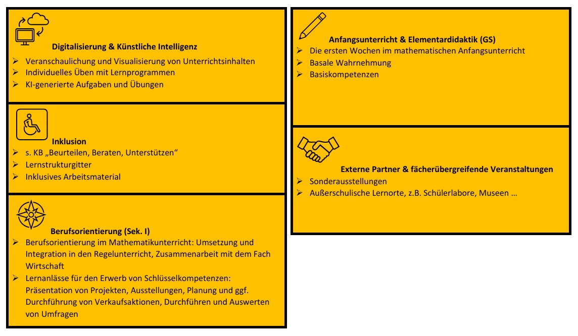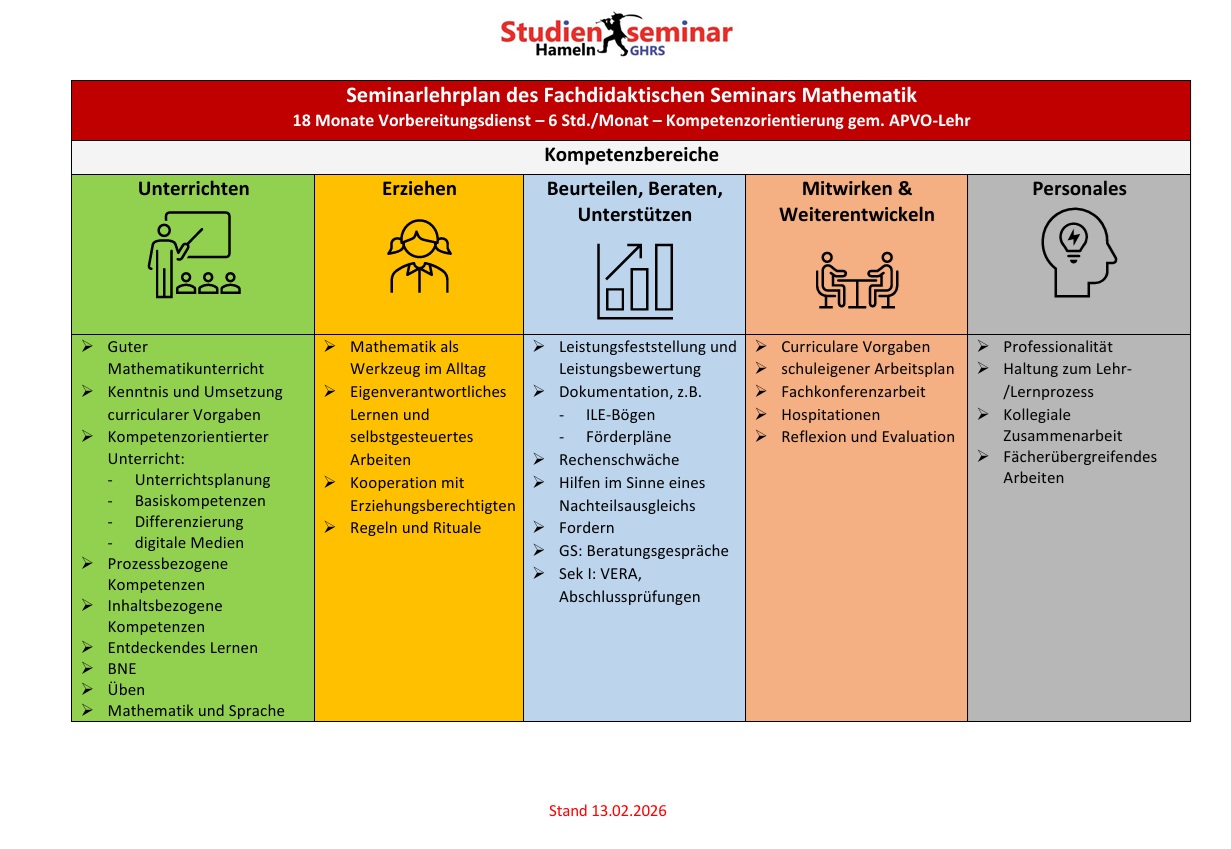 In unseren Seminaren vertiefen wir die Grundlagen, die Sie im Studium erworben haben und entwickeln Ihre Handlungsmöglichkeiten für deren praktische Umsetzung weiter. Das gemeinsame Ziel sowohl unserer GS- als auch unseres Sek I-Fachseminars lautet, Schülerinnen und Schülern die Denkweise der Mathematik zu eröffnen.